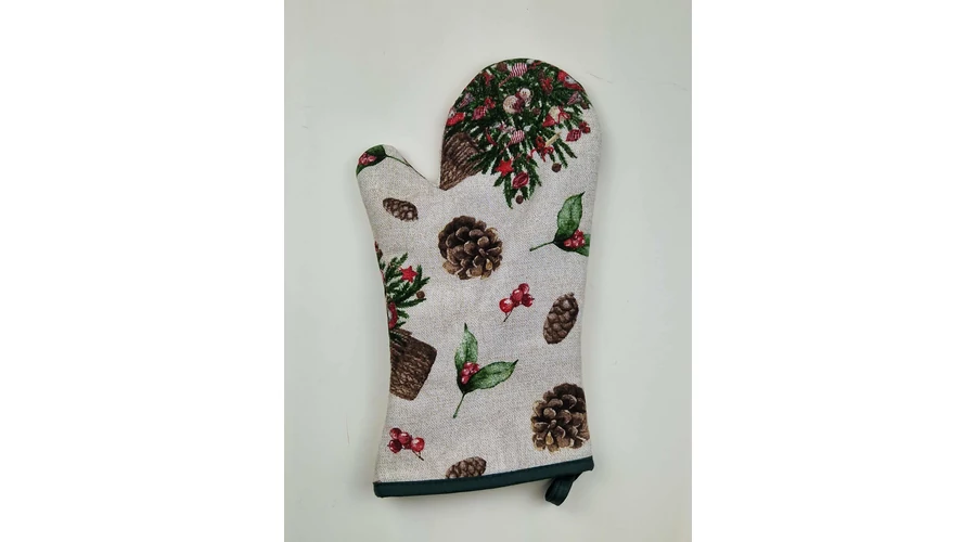 Tegye ünnepivé a konyhát ezzel a hangulatos karácsonyi mintás fogókesztyűvel! A kesztyű vastag, hőálló anyagból készült, hogy biztonságosan és kényelmesen vehesse ki a forró tepsiket, edényeket a sütőből.