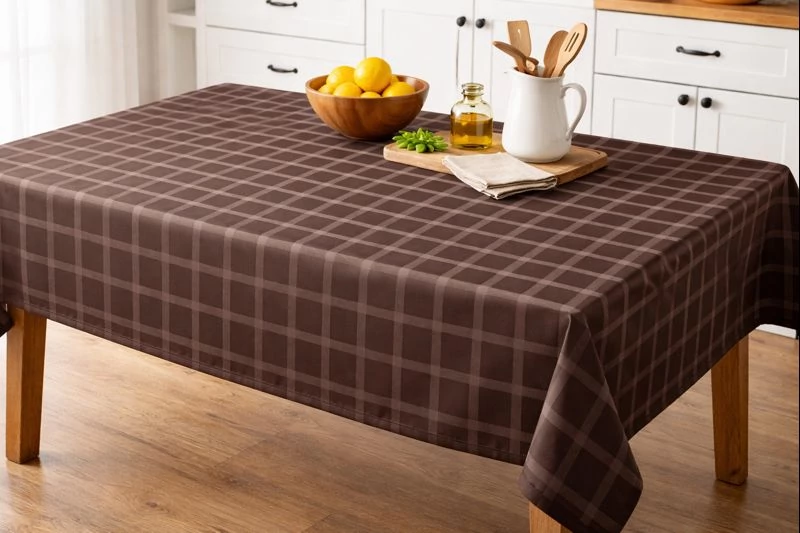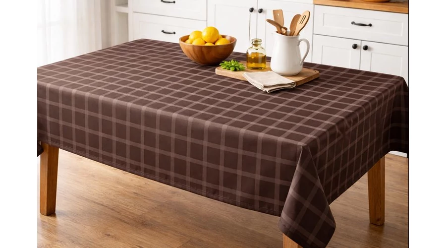 Szennytaszító damaszt barna kockás.
